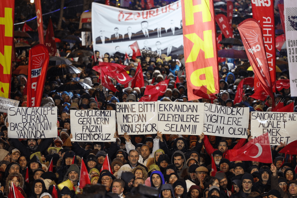 CHP’nin ‘Millet İradesine Sahip Çıkıyor’ mitinglerin yeni adresi Ataşehir oldu. Tutuklu cumhurbaşkanı adayı İmamoğlu, gönderdiği mesajda “Onlarla girdiğim her seçimi kazandığım için korkuyorlar. Sandıktan kaçamayacaklar!” dedi. CHP lideri Özel ise “Senin beceriksizliğin yüzünden kimse ilave üç ay hapiste yatmayacak. Bunu yapmayıp yargılamayı başlatmayıp üç ay daha masum insanları adalet karşısından kaçırırsanız, aha da buradan söylüyorum. O gök kubbeyi tepenize yıkacağız, tepenize” şeklinde konuştu.