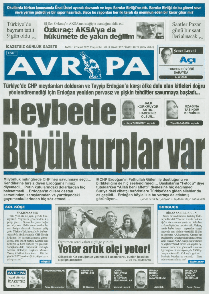 Ana Sayfa Güncel Gazete manşetleri 27 Mart 2025 PerşembeGüncelGazete manşetleri 27 Mart 2025 PerşembeYazar Kazım - Mart 27, 2025450FacebookTwitterPinterestWhatsApp