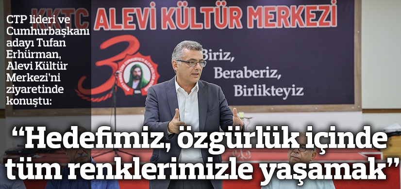 CTP lideri ve Cumhurbaşkanı adayı Tufan Erhürman, Alevi Kültür Merkezi’ni ziyaretinde konuştu: “Hedefimiz, bütün renklerimizi koruyarak özgürlük içinde yaşamak.”