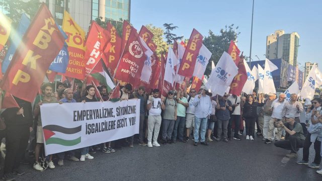 Öte yandan yaşananlara ilişkin tepkiler de yükselmeye devam ediyor. Dün İstanbul’da SOL Parti, BKP, EHP, TİP, TÖP’ün çağrısıyla yurttaşlar İsrail Konsolosluğu’na yürüdü. Konsolosluk önünde yapılan açıklamada, “Varlığını katliamlara borçlu olan Siyonist İsrail Rejimi, iki yıldır Orta Doğu’da eşi benzeri görülmemiş bir yıkım yaratıyor. Mazlum Filistin halkı başta olmak üzere Lübnan, Suriye, Yemen ve şimdi de İran topraklarında sayısız hava saldırısı ve bombardımanla asker-sivil ayırt etmeksizin vahşet gösterileri düzenliyor” denildi.