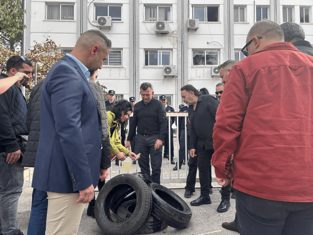 Konuşmaların ardından Maliye Bakanlığını önünde lastik yakıldı.
